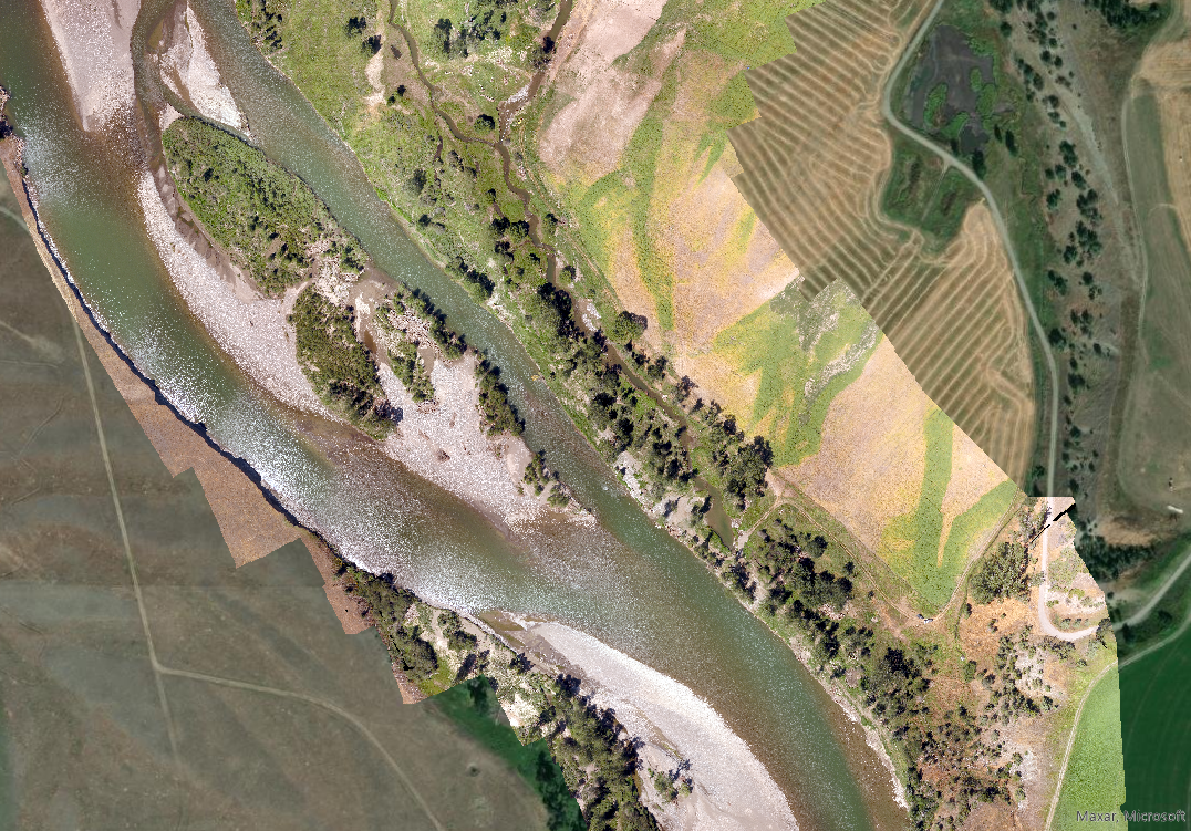 On another project on the Yellowstone River after the historic 2022 floods, Montana Map Works was hired by river restoration engineers to UAS map and video/photo a site for clients who were concerned about damage to a previously restored creek that provided spawning and rearing habitat for trout. Based on UAS models the restored creek fared exceptionally well during the flooding, and helped engineers as well as ranch managers, identify areas of woody debris recruitment/loss and calculate change in land use. Additional unexpected data gathered via UAS was the extreme change in habitat composition on the Yellowstone River itself,